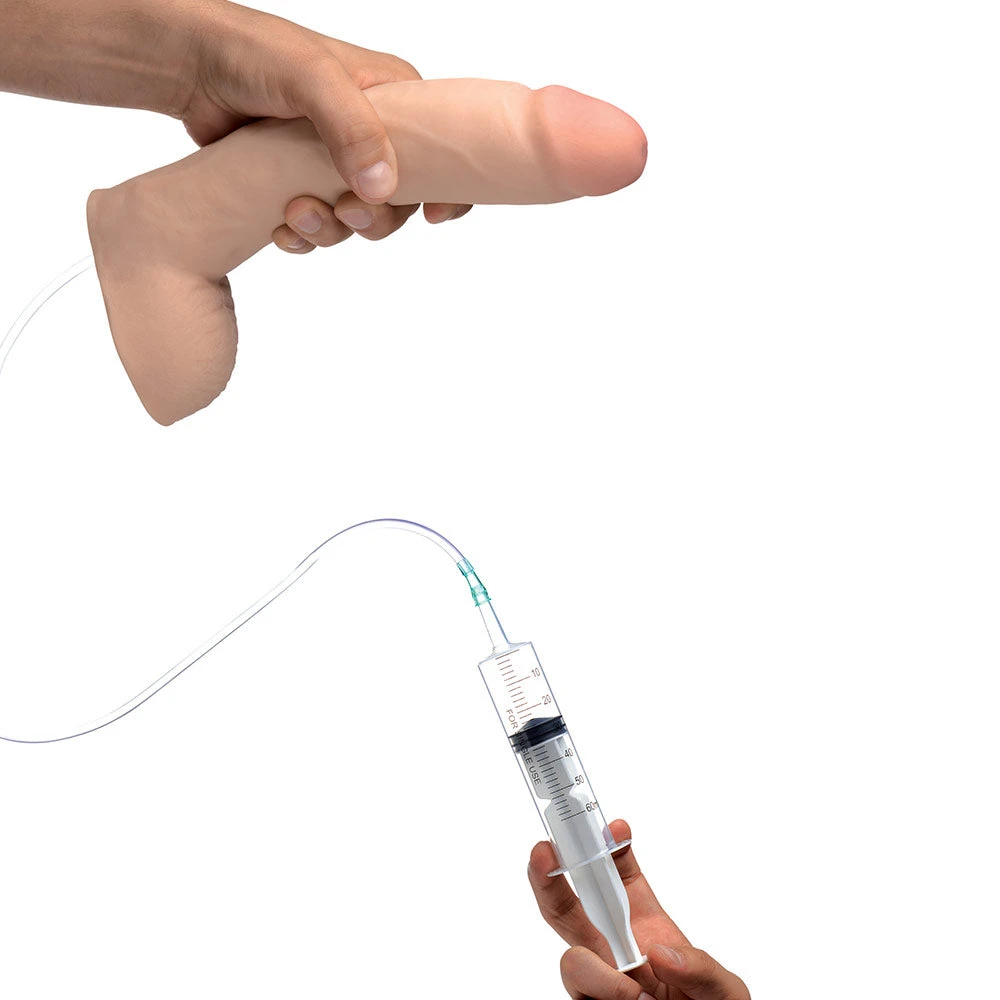 This huge cock has a massive load of cum to unload for you. Impale yourself on the long, girthy shaft and see if you can bottom out on those wrinkled balls. The dual-layered material is soft and lifelike on the outside, but firm and strong on the inside. Every vein and ridge will massage your fuck tunnel as you thrust it in and out. Just fill up the syringe with up to 60ml of Cum Load Unscented Water-Based Semen Lube or your favorite fluid and get to work. When you’re ready to feel the rush of cum, press down the plunger on the syringe and savor the flood!