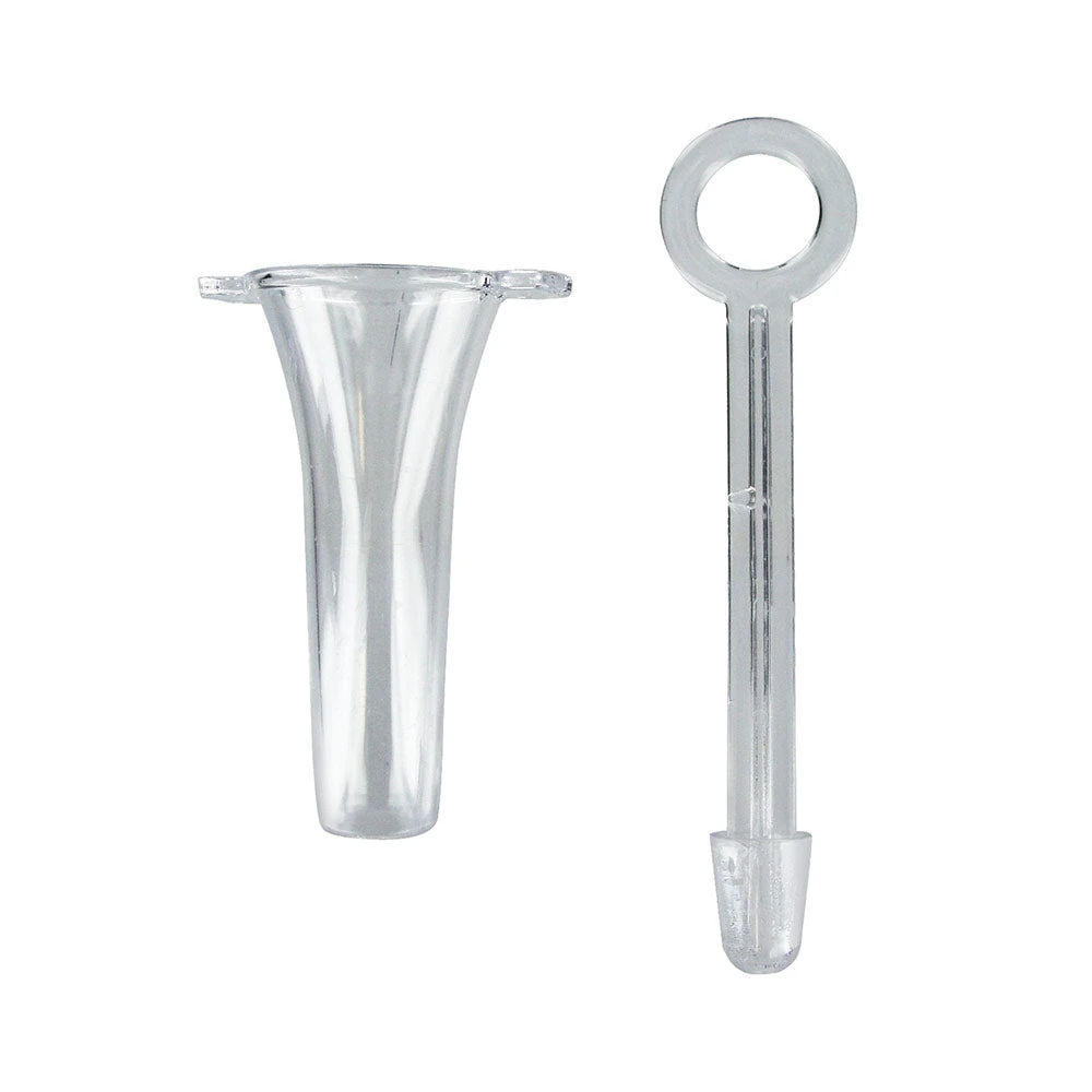 This medical instrument is used to examine the inside of a patients rectum. Once inserted the inner piece with ring tab can be removed to for better visibility during exam. When the inner tab is removed, the outer part resembles a funnel.