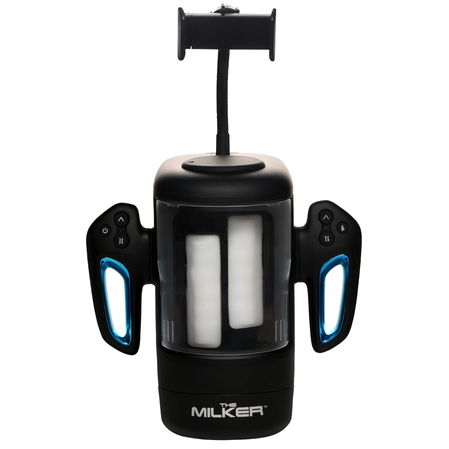 Revolutionize your solo play with the Cyber Milker Stroking & Vibrating Masturbator! Keep your hands free to navigate the waves of pleasure, thanks to the handy phone mount—perfect for watching your favorite videos or video calling your partner. Dive into ecstasy with 3 speeds and 7 vibration patterns combined with 6 dynamic stroking modes. Want some heat? Crank up the temperature to a sizzling 107.6 degrees Fahrenheit! The soft, stretchy rubber embraces your shaft, and the textured tunnels provide incredible sensations. Easy to clean, waterproof, and rechargeable, this toy is built to keep up with your wildest sessions!