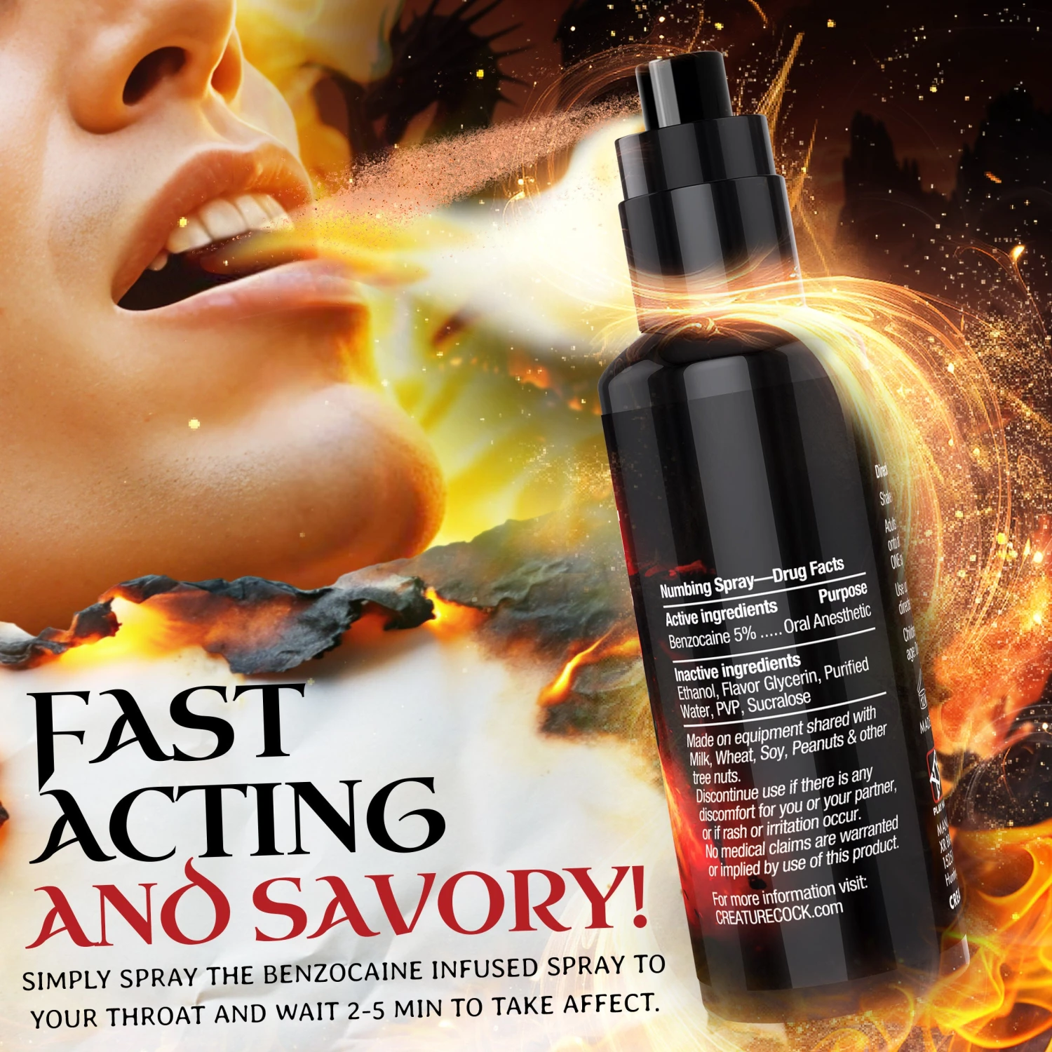You’re kneeling on the floor, your mouth hot and spiced with cinnamon. You take his heavy cock in your mouth. Fuck, it tastes so good. You work your way down and then you slide him down your throat. You hear a satisfying groan and his hand grabs the back of your hand. You hold your breath and open your throat as you take in every drop of his cum! Are you ready to give the ultimate blowjob? Our Lick and Blow Spray is here to help you deliver mind-blowing oral without the gag reflex! This flavored spray, enriched with benzocaine, ensures smooth, deep sensations, giving you unparalleled confidence while pleasuring your partner. Embrace the delightful dragon’s breath cinnamon flavor that adds a warming touch to your experience. Designed to be sugar-free and paraben-free, our spray promises safe, exhilarating fun. And guess what? It’s proudly made in the USA. So take this All-American dragon’s breath spray to your next encounter and show him how hot things can get!