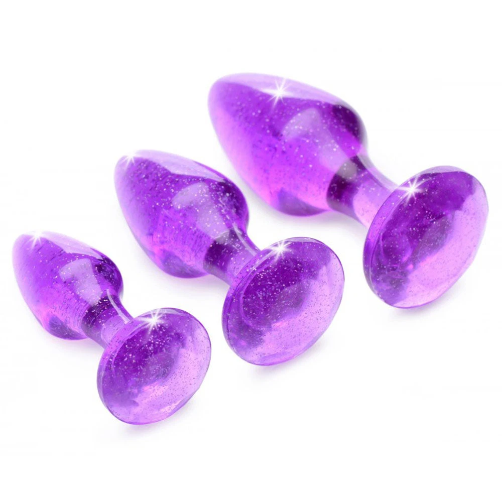 These glittering anal plugs are designed to add a little dazzle to your derriere! Tapered and slender for easy entry and comfortable fill, perfect as warm up tools or dedicated anal pleasure. The graduated sizes let you play at your own pace or to train your backdoor for bigger and better things!