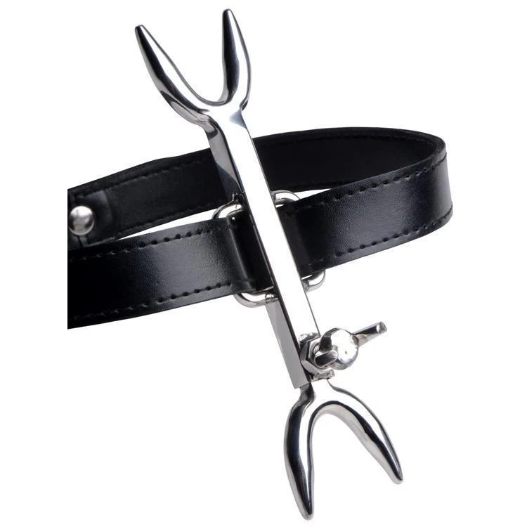 Your sub will be forced to tilt his head as far back as you desire with the sadistic Heretics Fork! This medieval device adjusts so that you have complete control of his discomfort. Collar him with the fine leather strap and then wedge the prong between his chest and chin. This unique posture collar will dig into his tender flesh if he doesn’t maintain his position! Train your boy with a distinct BDSM device that will elevate your scene!