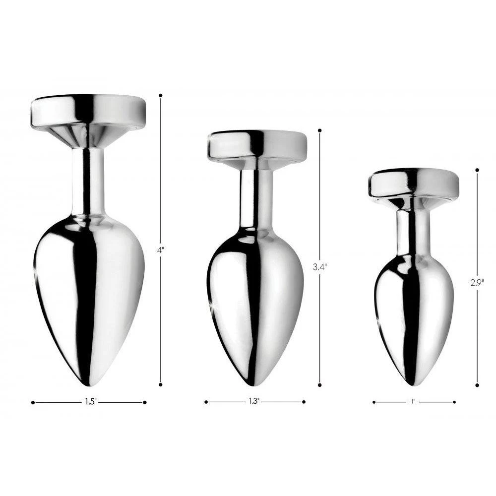Perfect for a night out or a night in, this plug will shock and delight all who discover it flashing between your ass cheeks. Choose your size: small, medium, or large. The sleek metal goes in smooth with a tapered design and a narrow stem that allows comfortable wear for hours.