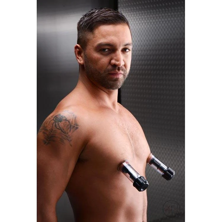 These big black nipple sucker cylinders suck harder with every turn. Keep twisting them until you just can’t take any more. For those who like their nipple play severe, the Black Max suction cylinders are ideal.