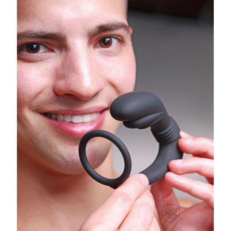 Size: 5 inches in total length, 3.25 insertable, 1.4 inches in diameter at head. Cock ring measures 1.5 inches in diameterMaterial: SiliconeColor: BlackThe cock ring helps men achieve a longer-lasting and harder erectionThe prostate stimulator slides easily into the anus and strokes your prostate while you thrustThe shaft is ribbed and ergonomically curved for comfort and ease of useThe material is non-porous, phthalate-free, and easy to clean