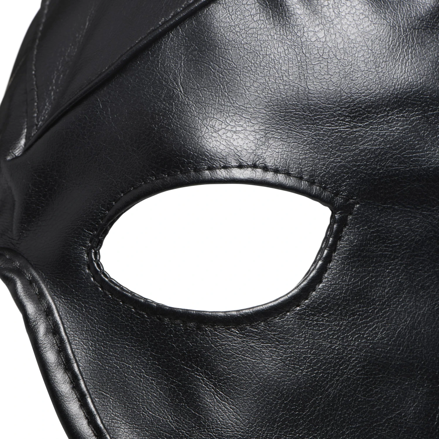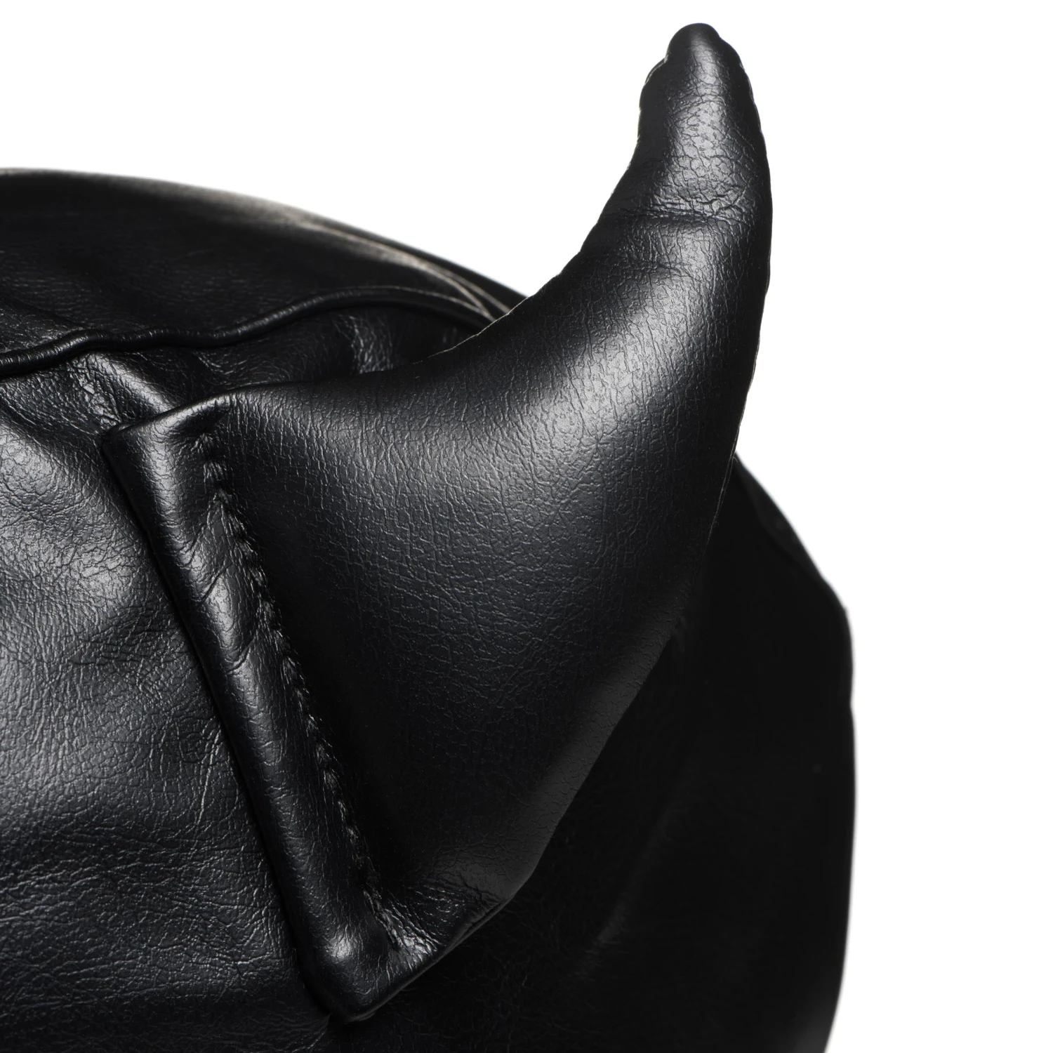 PU Leather Horned Hood: This PU leather hood is faux leather and vegan friendly. Dress up as a devious, dungeon demon with a mask that covers all but your eyes and mouth with horns on top to add a devilish spin to it!
