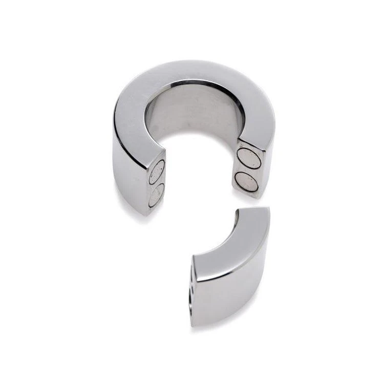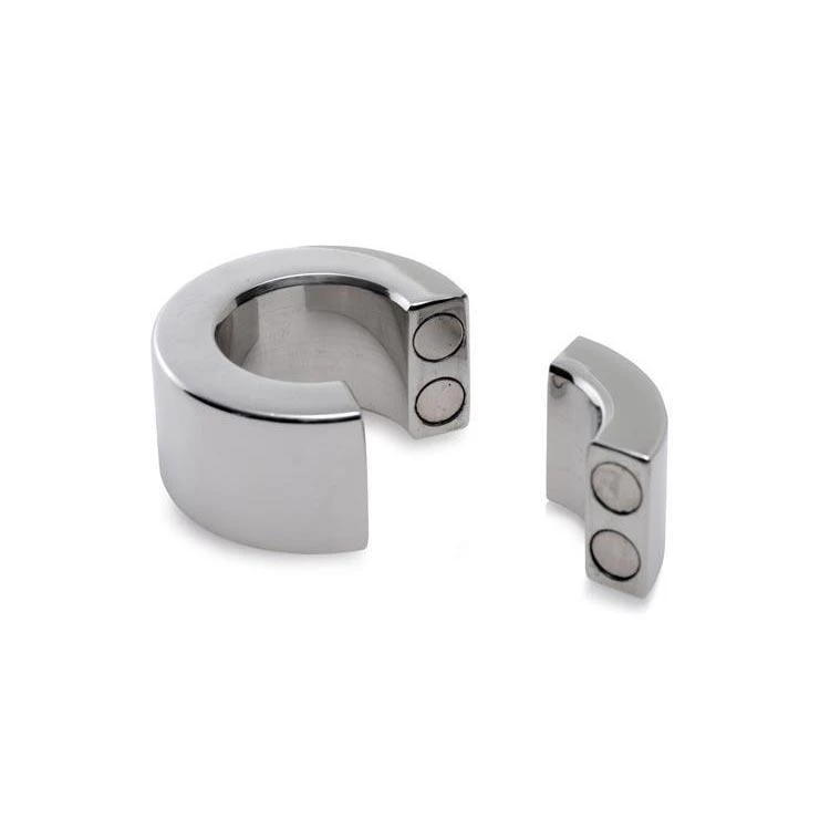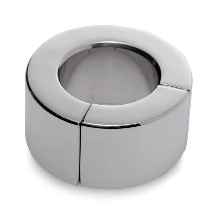 Give those balls a good, strong tug! Whether you enjoy the sensation of your balls getting pulled on during masturbation and blowjobs, or whether you enjoy yanking on your bad slave’s scrotum while you fuck his tight hole… this ball stretcher will meet your needs and exceed your expectations! Pull those balls down and through the opening of this hefty stainless steel ring! Make sure all the skin is against the back of the stretcher before letting the magnetic closure clink loudly into place! The incredible downward tug will be intensified with every motion, as you thrust into your man. Use this tool by yourself or with a partner… for pleasure or for pain!
