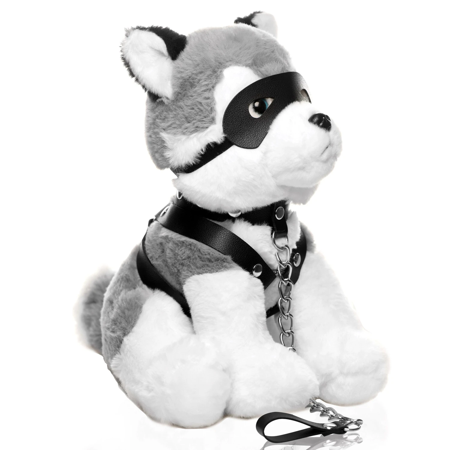- Kinky Novelty Gift!: Enjoy this fun husky pup in its vegan-leather harness, leash, chain, and mask!