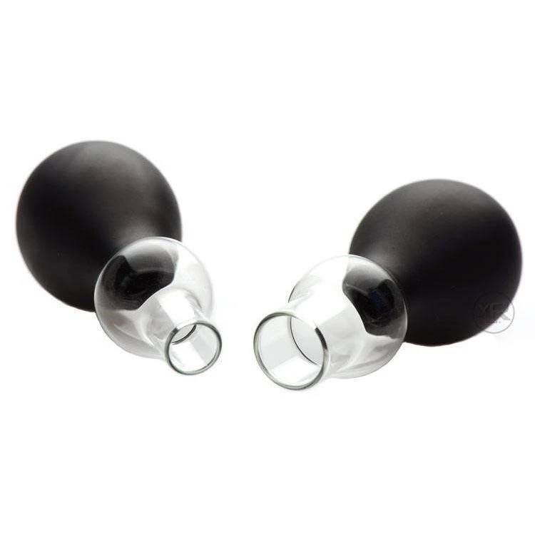 Other nipple suckers are for fun; these are made for a growth regimen. The two differently sized glass tipped pumps are made to gently pull your nipple out so you can roll a rubber O-ring around it. You can start small with the small pump, and the smallest O-rings. Over time you can built up to the bigger pump and higher gauge O-rings. If you want big nipples that call attention to themselves this kit is a good tool to help you work your way there.