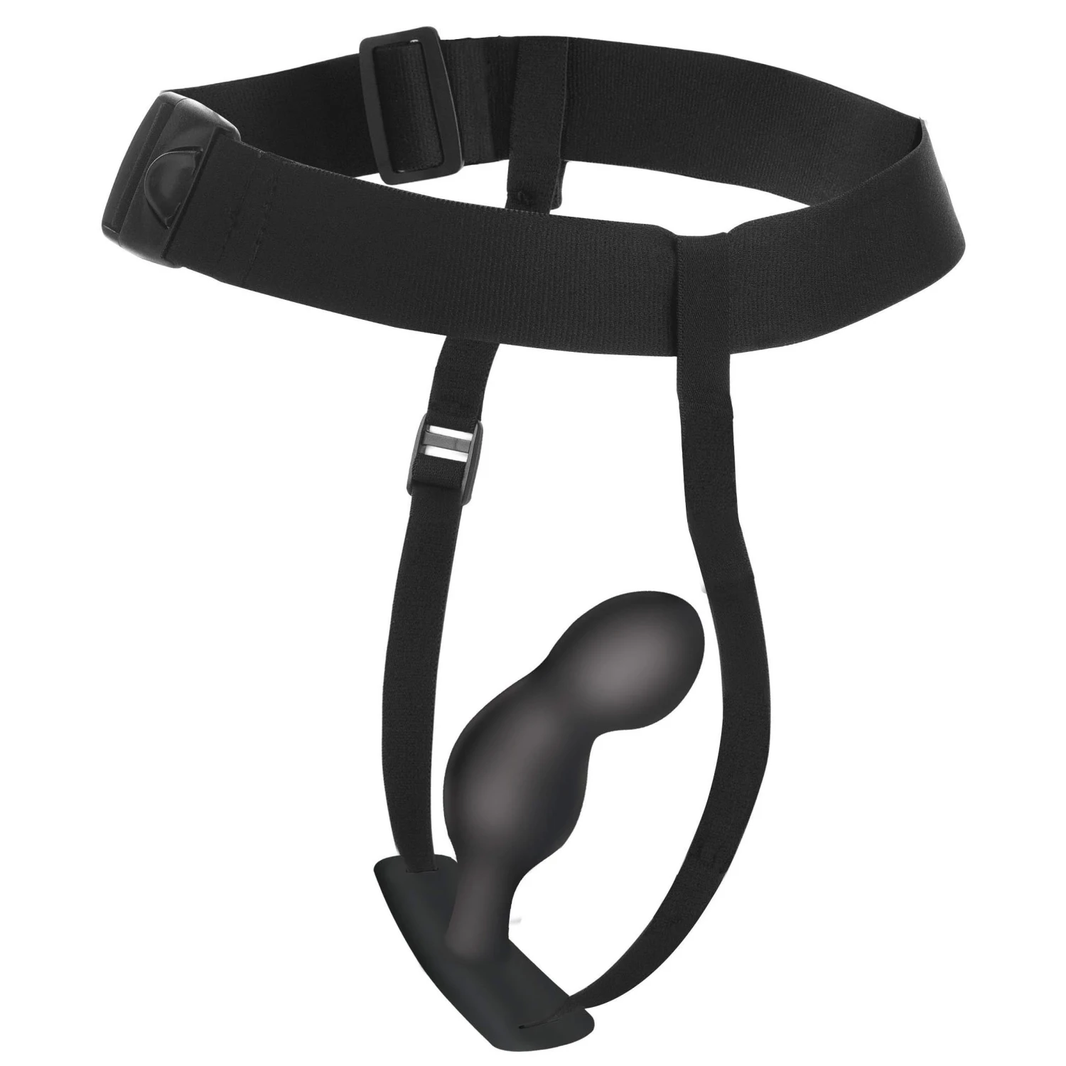 Measurements: Waistband adjusts from 26 inches to 48 inches in circumference, unstretched. Crotch strap adjusts up to 25 inches in length. Plug is 4 inches insertable, 1.3 inches widest diameter.