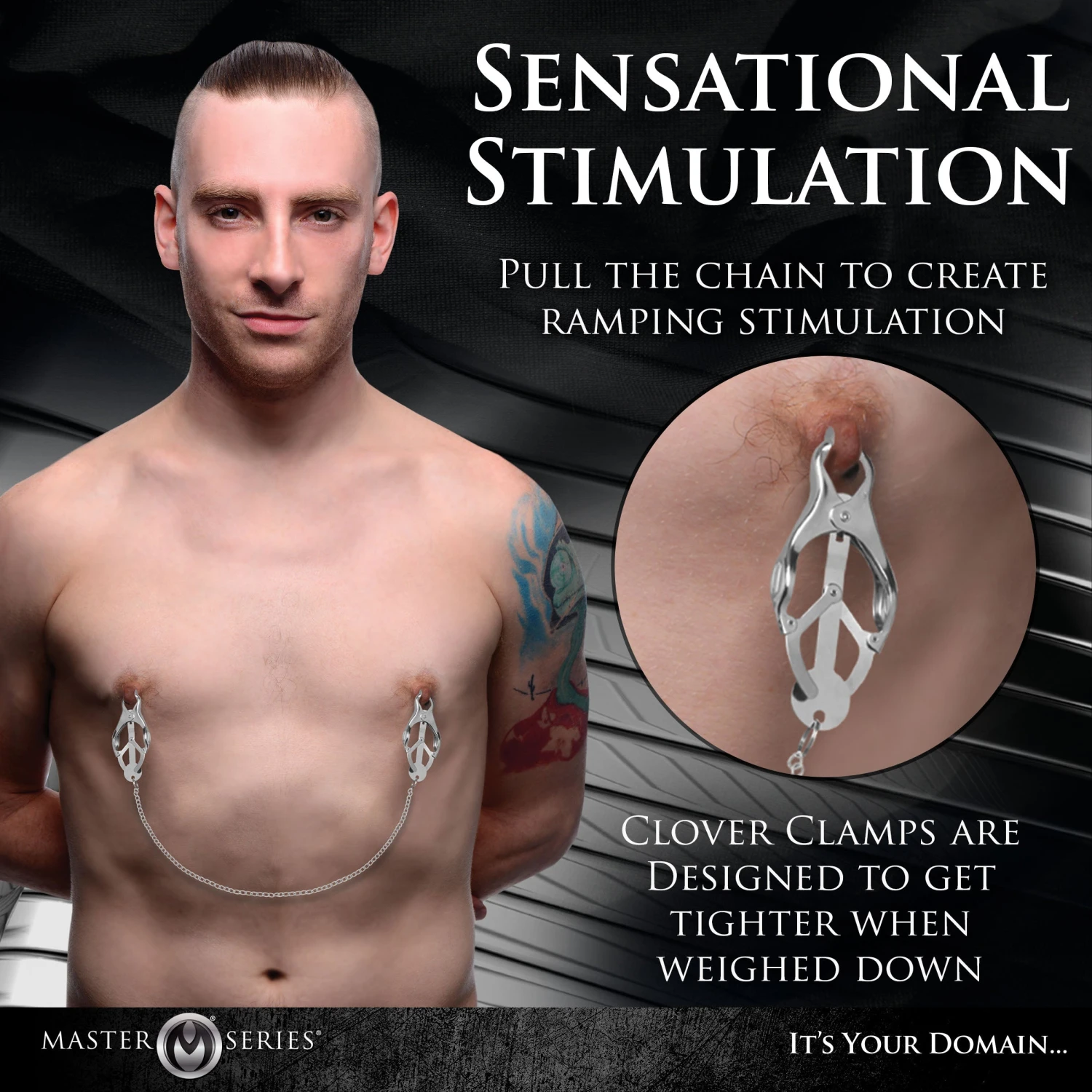 Make every sadomasochist happy with these extra mean clover clamps! Like the original, they increase in pressure when you pull on them. However, these clamps have little spikes that add extra stinging bites to each nipple when clamped on! The clover clamp is made out of nickel-free metal and, just like the original clover clamps, the more you pull the tighter the grip! A 12 inch chain connects the two clamps so enjoy giving it a tug and playing lots of wicked games together! To clean, simply use warm water and mild soap and soak the chain and clamps in them. For more serious cleaning, use a combination of rubbing alcohol and water. Spray with a toy cleaner for good measure after each play session and keep them on hand or slip them into your toy bag to add some spice to any scene!