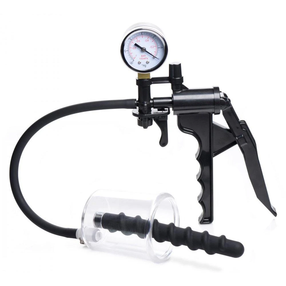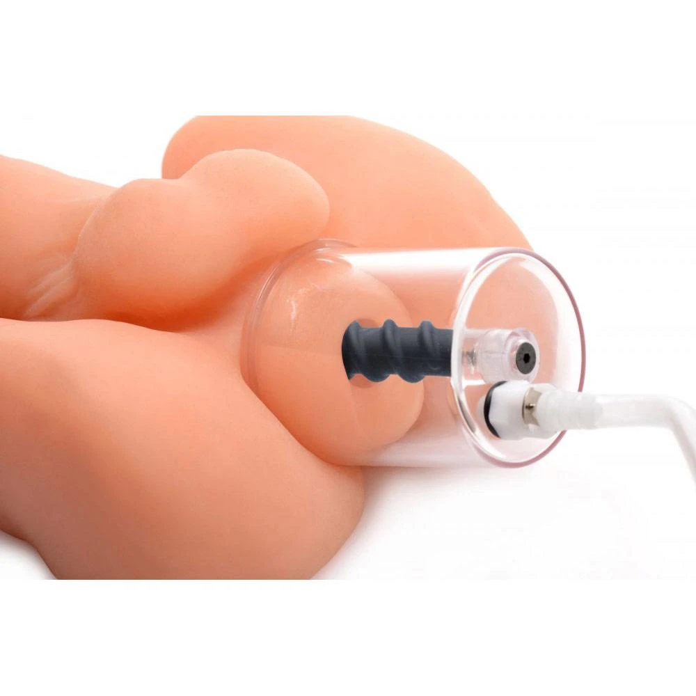Screw your man with the swirl textured insert until the cylinder is flush with his ass, and begin pumping. Watch as your plaything’s anus gets sucked into the cylinder and pucker like a blooming rosebud! Watch him enjoy the swirling ridges as you gently pump his anus to a new delicious size for you to enjoy.
