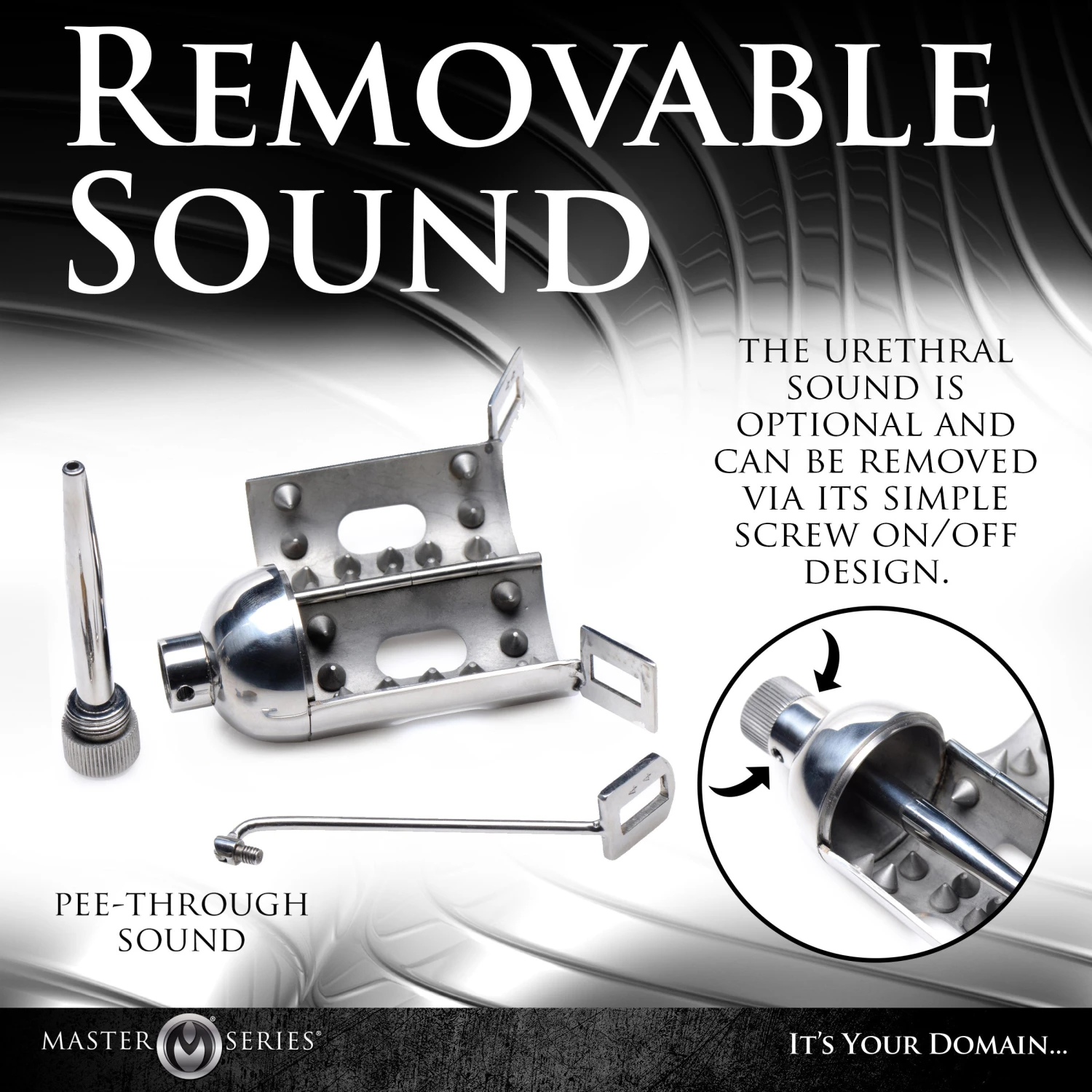 The pee-thru sound is simple to use and screws in the head of the cage and into the urethra of your creature so they can relieve themselves throughout the day.