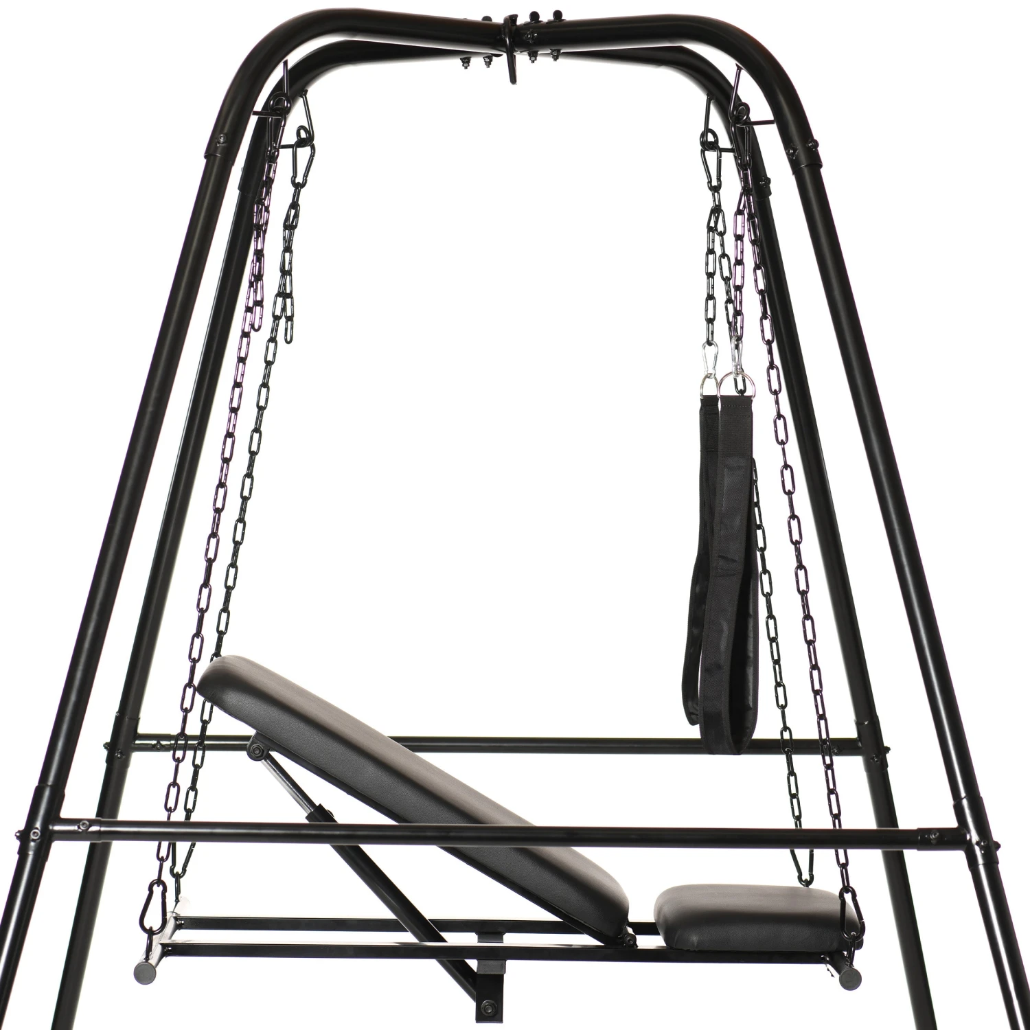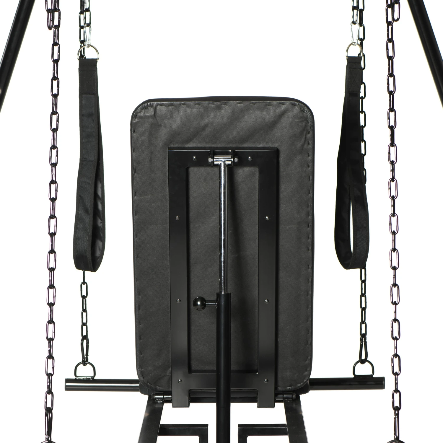 Elevate your pleasure to new heights with the game-changing Adjustable Swing Stand! Unlike a regular sex swing or sling, this sturdy beast offers unbeatable support and comfort for you and your playmate. With the ability to sit upright or recline to any degree, from a 90-degree angle to a flat 180-degree position, the possibilities for mind-blowing pleasure are endless. The sturdy design can handle up to 330 lbs, ensuring you can explore with confidence and security. Plus, the adjustable height and plush, vegan-friendly leather pads make this a must-have for ergonomic playtime. Get ready to take your adventures to the next level!