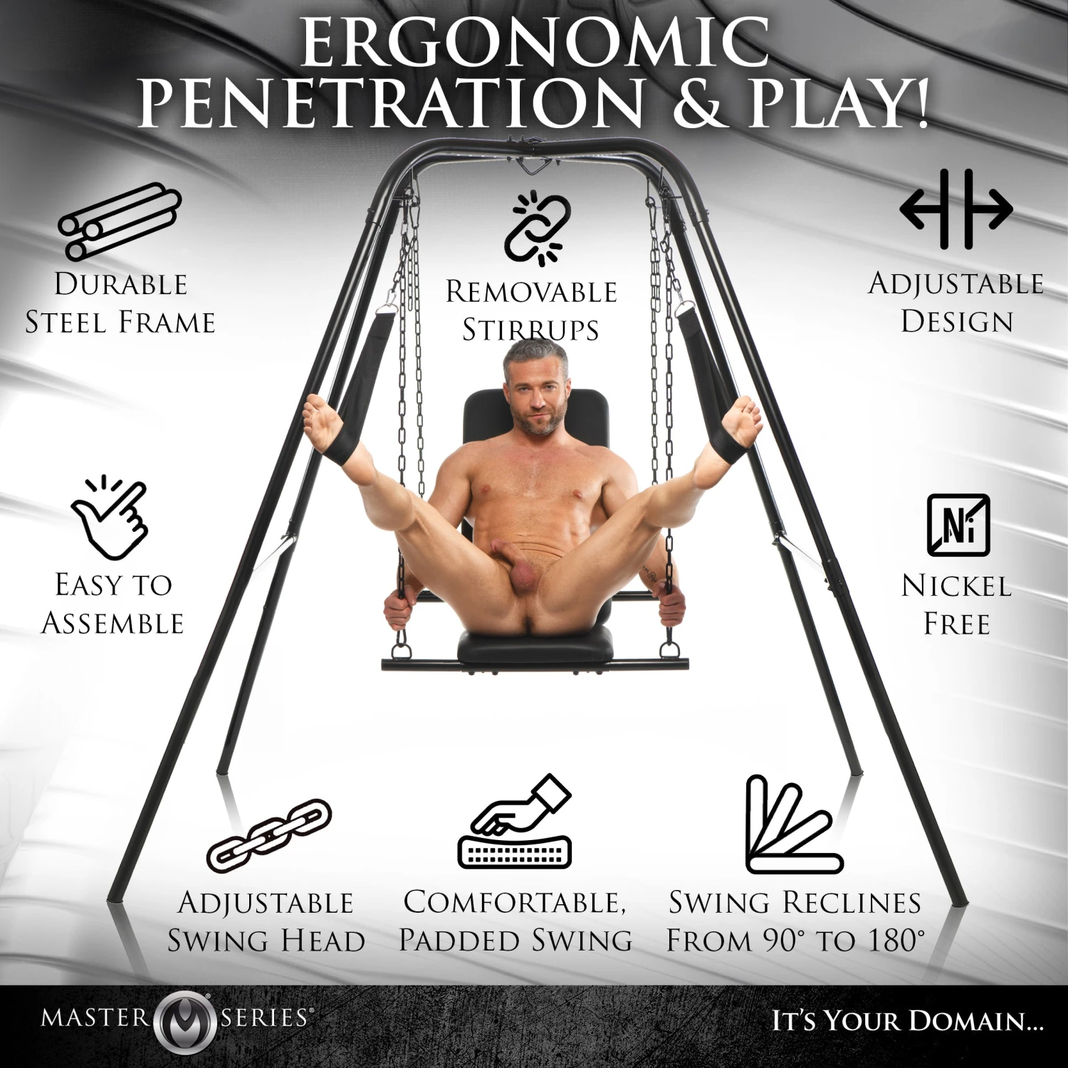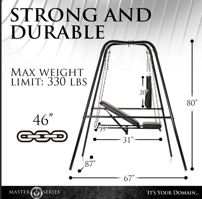 Setting up the swing stand is a breeze. Check the height and dimensions before assembling to ensure a perfect fit in your space. Attach the four suspension chains and the chair, and don’t forget to add the stirrups for extra access so they’re legs are in the air. Adjust the height according to your preferences and desired activities. Safety first, so sit in the chair yourself to confirm a secure setup.