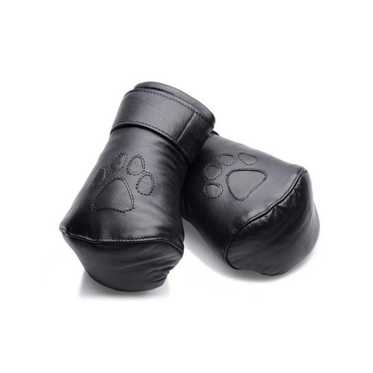 Take your pup for a walk in a pair of handsome and comfortable gloves! These quality leather paws will complete your puppy play scene, allowing your canine to stay on his hands and knees for as long as you desire. Push his hands into the mitts, tighten the laces, and fasten the velcro strap to effectively restrict his manual mobility. You will both love the fine craftsmanship of these durable and luxurious leather gloves, artfully designed for your pleasure.