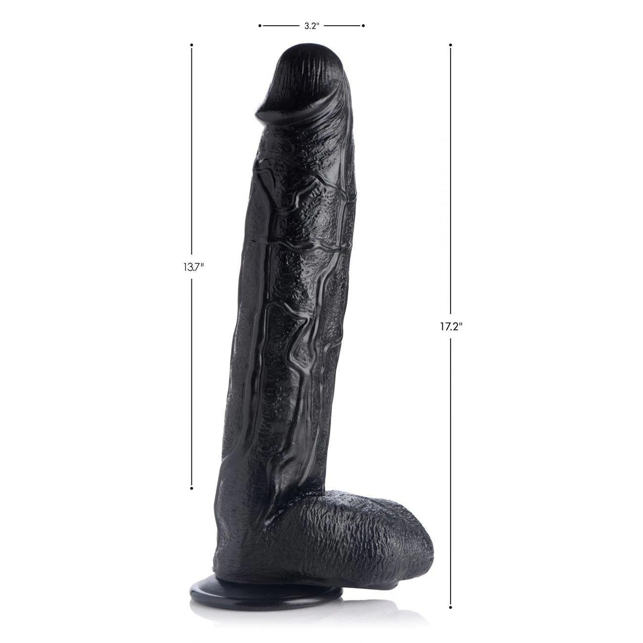 Measurements: 17.2 inches in total length, 13.7 inches insertable length, 2.4 inches at narrowest diameter, 3.5 inches at widest diameter