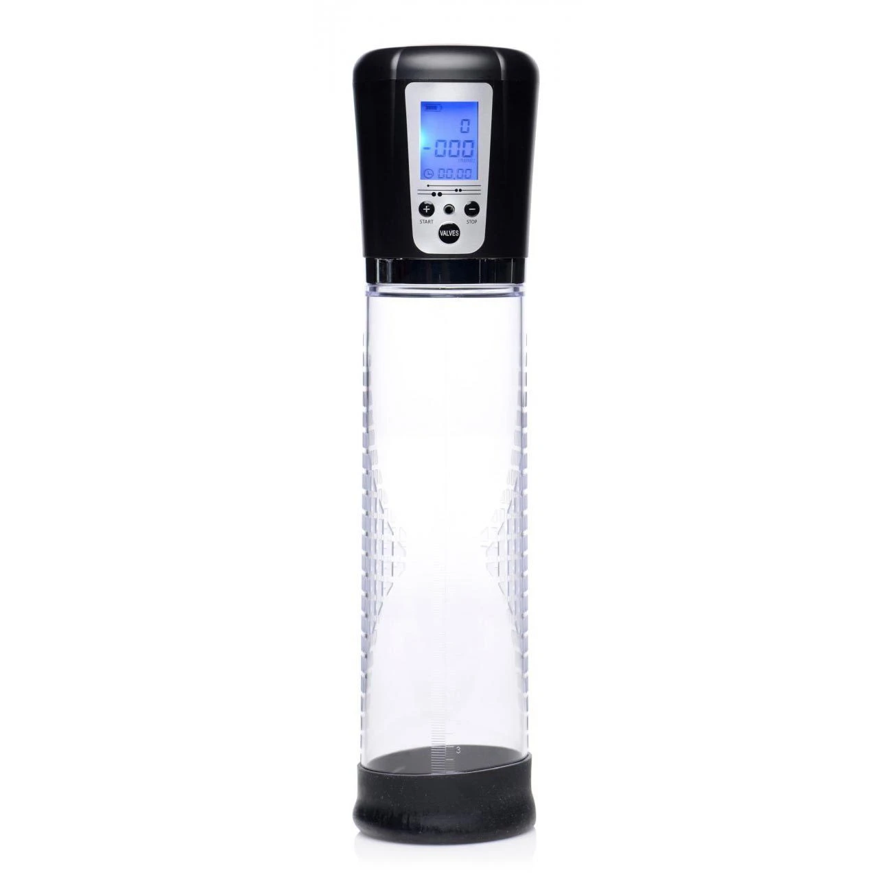 This automatic penis pump will give you a massive erection that bulges with rock-hard sensitivity! The cylinder is textured on the outside to provide a secure grip, with an optional silicone sleeve at the base for a tight seal around your shaft. Use the plus and minus summarys to discover 4 levels of suction. Track your gains with the measurements along the side, while the LED display shows you how much pressure is within, how much battery life is left, and how long your session has lasted. When you’ve had enough, the release valve will quickly free your engorged dick from the pump for you to play with it!