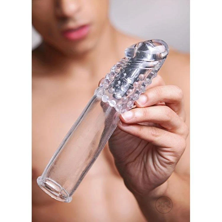Size: 7 inches in total length, 1.5 inches in diameter Material: TPR, ABS Color: Clear Batteries: Requires 3-tab batteries, included Increase the size of your cock without using complex pumps or devices External pleasure nubs offer stimulation during use The included bullet vibe adds new sensations during penetration Note: This sleeve is meant for use as a novelty only and is not designed to prevent STDs.