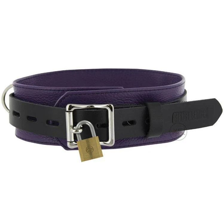 Keep your bondage sessions safe and secure with the Strict Leather Deluxe Black and Purple Locking Collar.
