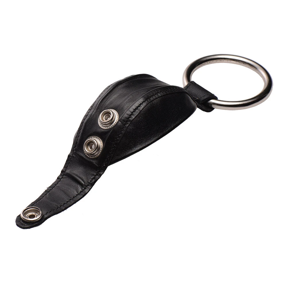 Use: To use place the flaccid penis and scrotum through the steel ring. Use the snaps to wrap the cover around the cock and balls and snap close. As the man is teased and pleased the straight jacket will restrict just how hard he can become.